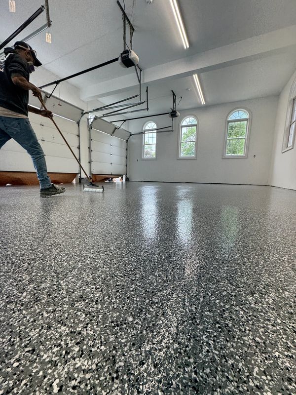 Durability That Lasts Our industrial-grade epoxy floors resist hot tire pickup, oil stains, chemical spills, moisture, and impact. Designed for daily use in New England weather, these coatings hold up season after season.Custom Colors and FinishesChoose from a wide range of flake blends, colors, and textures. Whether you're going for a modern gray tone or a bold, high-contrast finish, we’ll help you create a garage floor that complements your home and style.Easy to Maintain Our seamless, non-porous surfaces are easy to clean. No more dusty concrete or stubborn stains — just a quick sweep or mop to keep your floor looking fresh.Slip-Resistant and Safe We apply a textured topcoat that provides extra grip without sacrificing appearance. Safe for foot traffic, pets, and families.